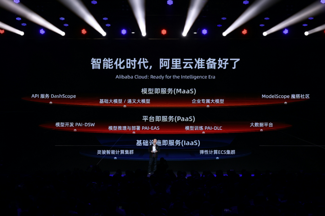 阿里云一直围绕 MaaS 理念来规划云计算产品,其中一个重要的点是围绕模型来实现 AI 开发范式的变革。这背后需要强有力的基础设施做支撑,例如 MaaS 下有 IaaS、PaaS 提供支持。