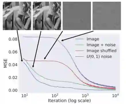 但是,为什么我们应该考虑这种参数化方法仍然不明显。 理论上乍一看,它似乎会产生原始的嘈杂图像。 在论文中,作者进行了一项实验,该实验表明,当使用梯度下降来优化网络时,卷积神经网络不会产生噪声图像,并且更快速,更容易地下降到自然的图像。