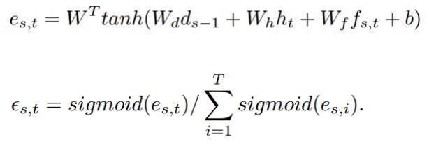 通常的 attention 方法(包括本文使用的 Loc-Aware)在计算 attention energy 中会使用 softmax,这样使得 attention 得分的分布变得比较尖锐,最终从 attention 得到的特征会集中在某一帧的位置上。和字母级别的解码相比,子词需要相对更宽的上下文特征。作者将 attention 中的 softmax 改为 sigmoid,使 attention 得分的分布变得相对平滑,从而使解码器每个 LSTM 单元的输入特征包含更多的语音上下文特征信息。