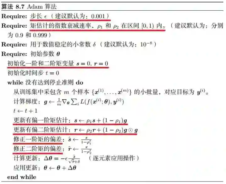 注意到,s 和 r 需要初始化为 0;且 ρ1 和 ρ2 推荐的初始值都很接近 1(0.9 和 0.999)