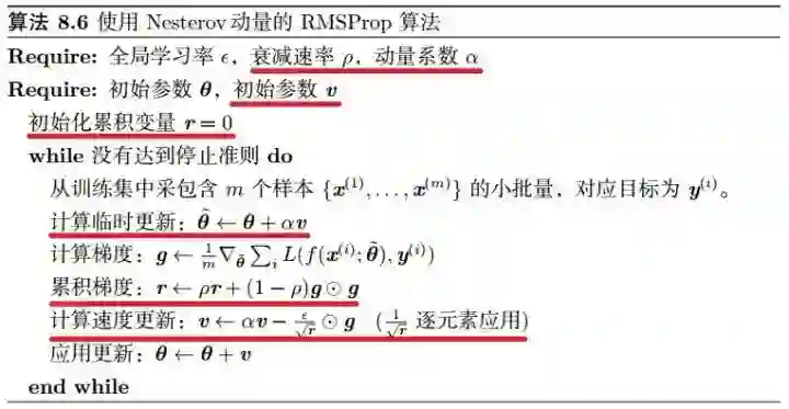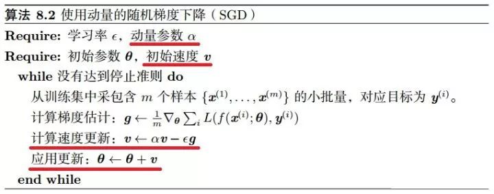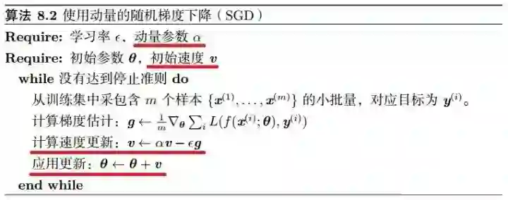 从形式上看, 动量算法引入了变量 v 充当速度角色,以及相相关的超参数 α(0.9)。