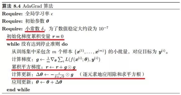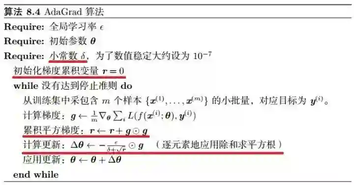 该算法的思想是独立地适应模型的每个参数:具有较大偏导的参数相应有一个较大的学习率,而具有小偏导的参数则对应一个较小的学习率