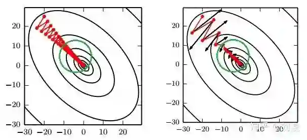 原始 SGD 每次更新的步长只是梯度乘以学习率;现在,步长还取决于历史梯度序列的大小和排列;当许多连续的梯度指向相同的方向时,步长会被不断增大;