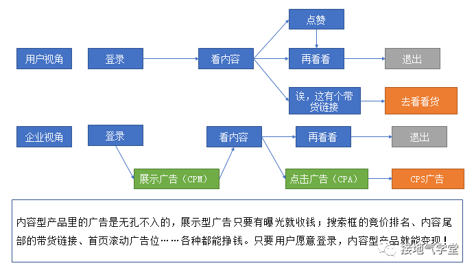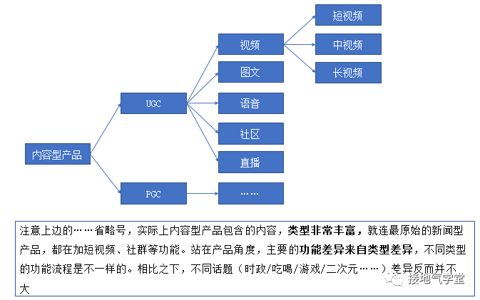 内容型产品:以提供视频/文字内容给用户看为目标。