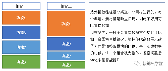 如果是站内分发流量,则要注意是否各种形式之间,存在流量挤兑的情况。原则上,应该给转化率高的渠道多分配流量,但是也不能简单地看“哪个渠道转化高,流量就全给它”。因为有可能某个功能有其特定的爱好群体,因此需要作为一个组合,来考察流量分配效率。