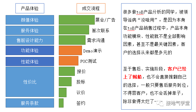 对于B端产品,要特别注意:B端产品的用户实际体验与用户付费是脱离的。因为B端产品经常有招标过程,在招标过程中,如何通过层层考核中标才是关键。此时的产品分析,本质上分析的是销售过程中成功几率(如下图)。