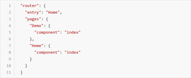 2) router.pages 对象表示应用的所有页面路由,当前我们有 Demo、Home 两个页面