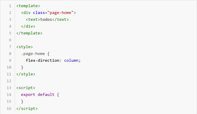 3) script:提供对页面的动态交互能力,如数据更新、事件响应,生命周期等