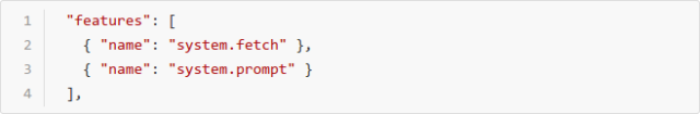 这时需要在脚本中引入 prompt 接口,并调用其 showToast() 方法,由于使用接口,我们需要在 manifest.json 中声明对 prompt 接口的使用:
