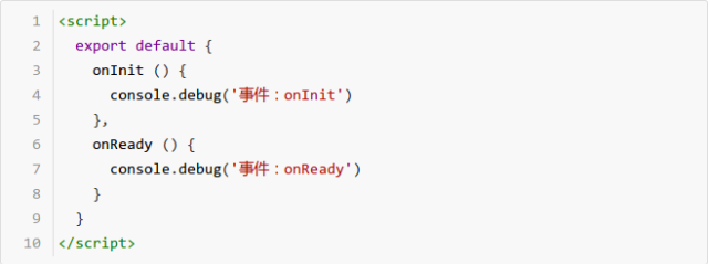例如,绑定页面的 onInit,onReady 事件,在页面数据初始化、节点渲染完成后输出日志: