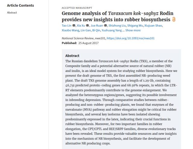 这些国家“战略级”的科研成果,已经摘取了部分可公开内容发表于《国家科学评论》上!这也向世界宣示着,中国在橡胶树替代作物研究中,已经居于世界巅峰地位!