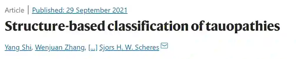 根据tau蛋白细丝折叠来分类tau蛋白病,图片来自MRC Laboratory of Molecular Biology 举个例子吧。上面提到过阿尔兹海默症,其实,家族性英国痴呆(familial British dementia,FBD)和家族性丹麦痴呆(familial Danish dementia,FDD)病例tau丝的结构与阿尔茨海默病(AD)和原发性年龄相关tau蛋白病(primary age-related tauopathy,PART)病例中的结构相同。再比如,进行性核上性麻痹(progressive supranuclear palsy,PSP)出现的频率仅次于阿尔兹海默症,也是一种常见的tau蛋白病。这篇文章发现了进行性核上性麻痹(PSP)的tau丝结构是一个全新的三层折叠结构,而且球状胶质陶氏病(globular glial tauopathy,GGT)的tau丝结构与进行性核上性麻痹(PSP)十分相似,只有尾端有所不同。目前,科学家们正在努力寻找不同的tau蛋白褶皱形成的分子机制,不过结果现在仍是未知数。Sjors H. W. Scheres和Michel Goedert团队也正在继续研究此课题,如果有一天真的能破译tau蛋白褶皱形成的分子机制,tau蛋白病的诊断和治疗将会迎来一个全新的时代。