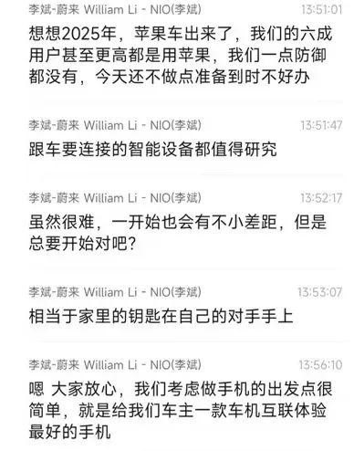 蔚来创始人李斌表示,蔚来造手机仍处于调研阶段。蔚来用户反馈,能否有一部和汽车能够更好进行连接的手机,促使蔚来研究这个行业。此外他还认为,苹果造车会带来冲击,小米等其他新进入者不是直接竞争对手。(新浪科技)