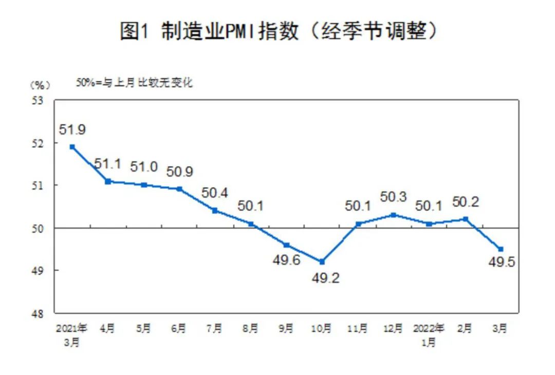 【统计局:3月份中国制造业采购经理指数(PMI)为49.5%】