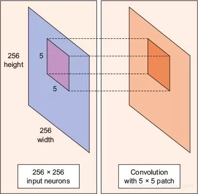 例如,假设图像通过5×5×64的权重矩阵上的卷积层。它通过滑动5×5窗口生成64个卷积。因此,该模型具有5×5×64=1,600个参数,其参数明显少于完全连接的网络,256×256=65,536个。