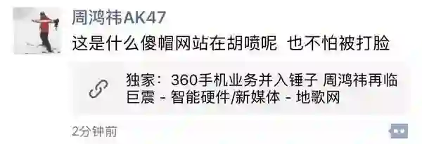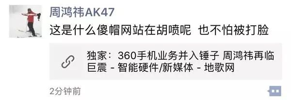 2018 年 3 月,有消息称 360 和锤子正在合并谈判,周鸿祎在朋友圈怒斥道:“这是什么傻帽网站在胡喷呢?也不怕被打脸。”