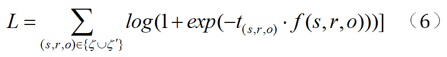 若 (s,r,o)∈ζ 则 t(s,r,o)=1 若 (s,r,o)∈ζ' 则 t(s,r,o)=-1。
