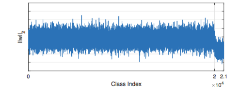 可以发现,上图最右侧,从 2 到 2.1 这个区间,也就是最后的 1k 个 id 的 weight 的 norm 明显小于前 20k 个。并且,最后 1k 个 id 在训练集上的 recall 只有 30%。而在增加了作者提供的 weight normalization 方法后,最后 1k 个 id 的 weight norm 和前 20k 个 id 的 weight norm 之间的差距明显变小了。作者提到在训练集上的 recall 一下子提升到了 70%。
