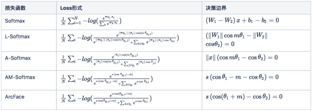 最后,我们总结一下加 margin 的几种 Softmax 的几种形式: