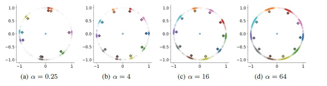 逐渐变小 α 的过程,也就是逐渐把分类面附近的样本往类中心挤压的过程。对应地,temperature 逐渐增大,也就是本文的“heated up”。