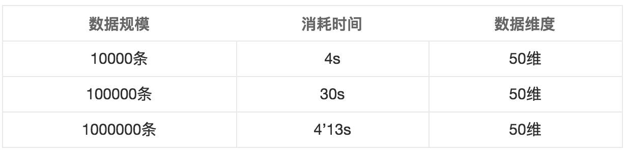 可以看到聚类效果还是不错的,对k-means的聚类效率进行了一个测试,将维度扩宽到50维