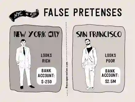 作为当代美利坚最繁华、最富有、最名声在外的两个地方,纽约和湾区差距似乎比两个国家的差距还大。