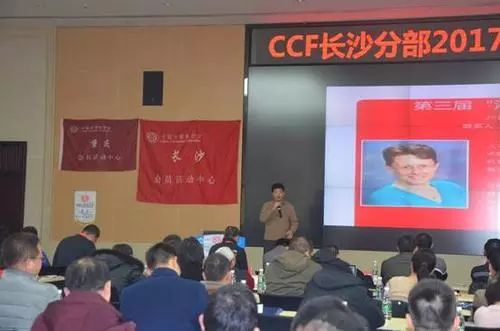 在经验交流活动之后,长沙分部进行了隆重的表彰颁奖典礼。2017年度CCF长沙分部颁发了会员发展奖、活动组织奖和特殊贡献奖,以表彰在2017年为分部作出贡献的个人和团体。张锦秘书长向会员汇报了三个奖项的评选规则,其中:会员发展奖根据总部统计的会员发展人数确定;活动组织奖综合考虑活动规模、影响力、与分部特色关联度等因素进行确定;特殊贡献奖是根据对分部发展作出长期、突出贡献的个人,每年度不超过2人,每人只能获得一次。最终2017年评出的获奖人员如下:湘潭大学刘任任荣获会员发展奖;国防科大毛新军荣获活动组织奖;湖南工业大学满君丰荣获特殊贡献奖。