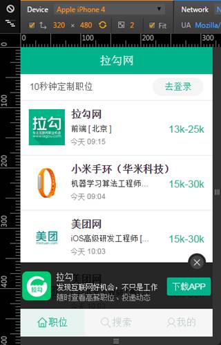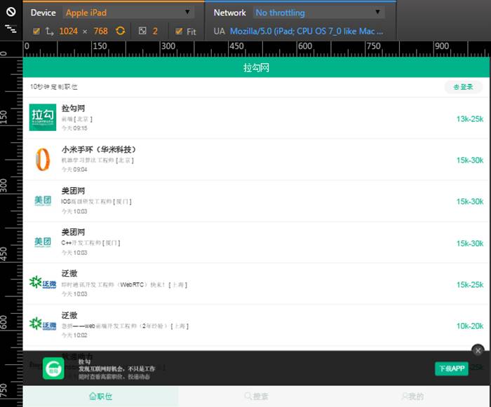 可以从图中看出,这个网页不管屏幕分辨率怎么发生变化,它的高度和位置都不变,而且里面的元素排布也没有发生变化,总是图标信息在左边和薪资状况在右边。