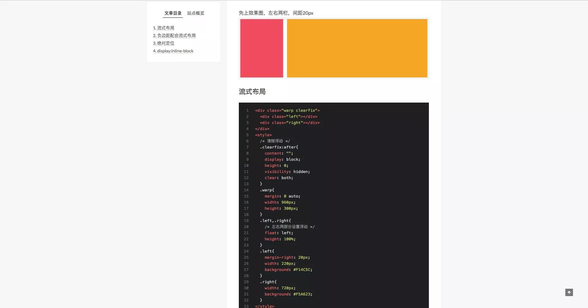 是否记得,那些一边主体内容,一边目录的网页,如图: