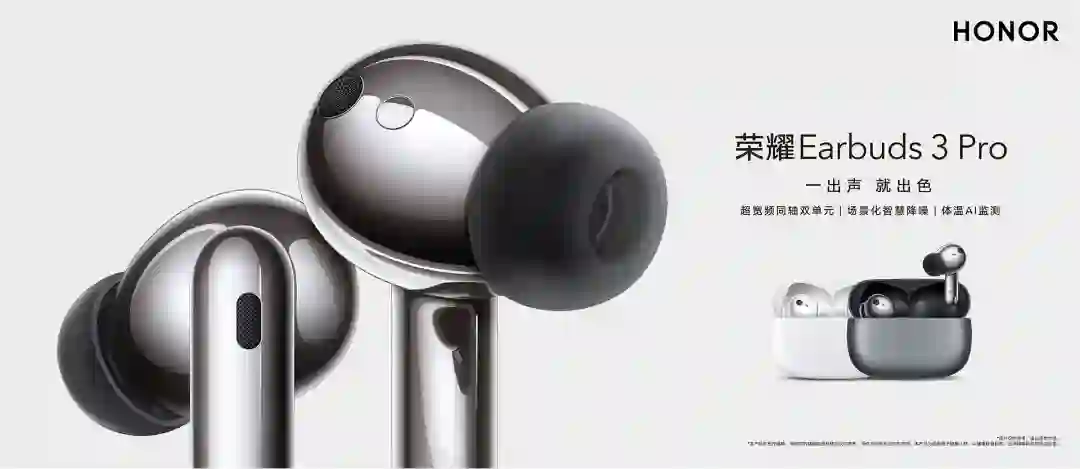荣耀 Earbuds 3 Pro,采用入耳式设计,前后腔导通,可平衡耳内外压力,单耳仅 5.1g。据官方介绍,该耳机是全球首款配备 11mm 超大振幅动圈+超薄陶瓷高音单元;同时也是首个获得 A 级(高端)降噪认证的 TWS 耳机。续航方面,荣耀 Earbuds 3 Pro 是首款支持 5C 快充的 TWS 耳机,充电五分钟听歌 2 小时,支持无线充电。