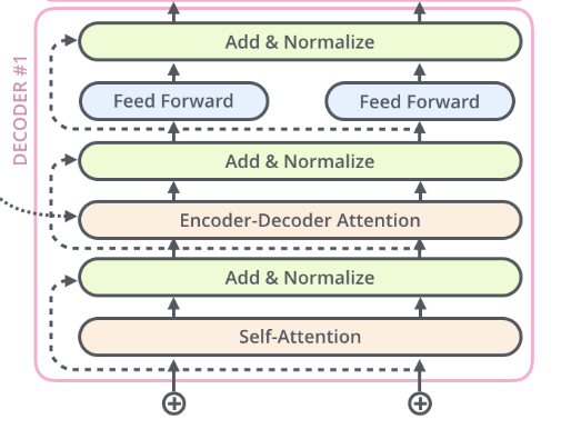 其实Deocer的五个组件我们在Encoder Part里面已经完成了四个部分,只剩下一个Encoder-Decoder Attention是没有涉及的。其实这个跟encoder_layer的差不多,只不过是它的