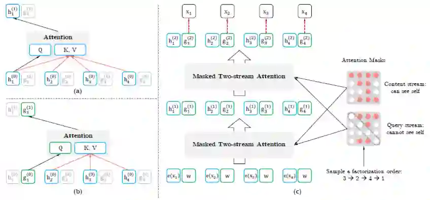 简单介绍完 Transofmer,转回本小节的主题 XLNet。关于 XLNet 可以介绍两点,即排列语言模型(也可以称为乱序语言模型,因为输入序列是随机排列)和双自注意力通道。