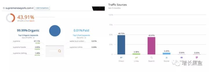 不花钱还想做营销?自然要靠病毒传播的效应。首先,我们通过数据可以看出,Supreme在营销投入上少的可怜。另外,大部分流量来自品牌搜索和直接访问 - 这符合一个“病毒”的特征。