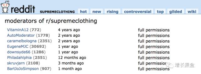 更重要的是,版主有权利把一个帖子置顶 - 这样就保证了帖子永远不会沉,能够让每个人在第一时间看到。下表就是Supreme旗下的各个版主: