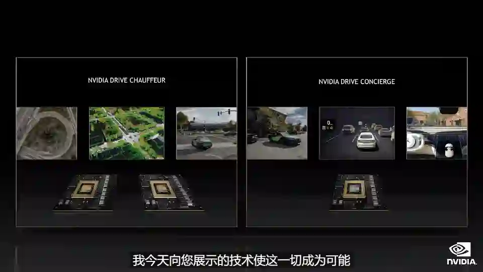 GTC大会上,英伟达还宣布了2项新人工智能驱动软件技术——Nvidia Drive Concierge 和 Drive Chauffeur。