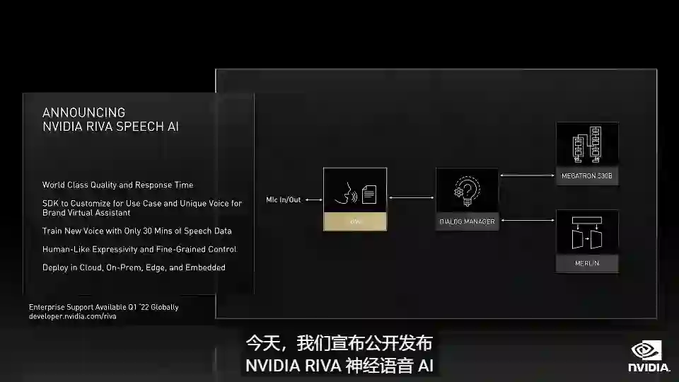 Avatar的语音识别基于英伟达Riva,这是一个软件开发工具包,可以识别多种语言的语音。Riva还被用来利用文本到语音功能生成类似人类的语音反应。