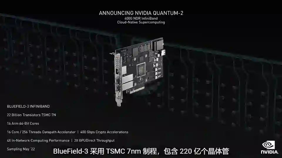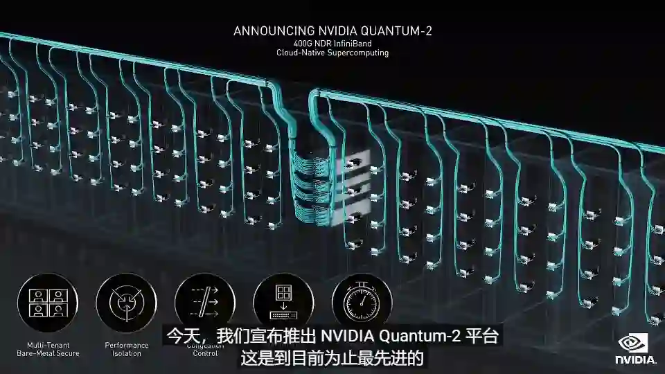 英伟达还推出了下一代 InfiniBand 网络平台Quantum-2,该平台可提供云计算提供商和超级计算中心所需的极致性能、广泛的可访问性和强大的安全性。