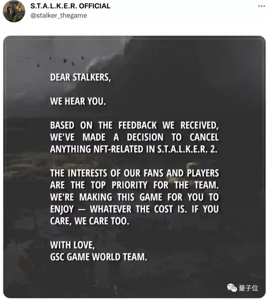 我们听取了团队成员、合作伙伴和游戏社区的意见,因此决定退出NFT领域。