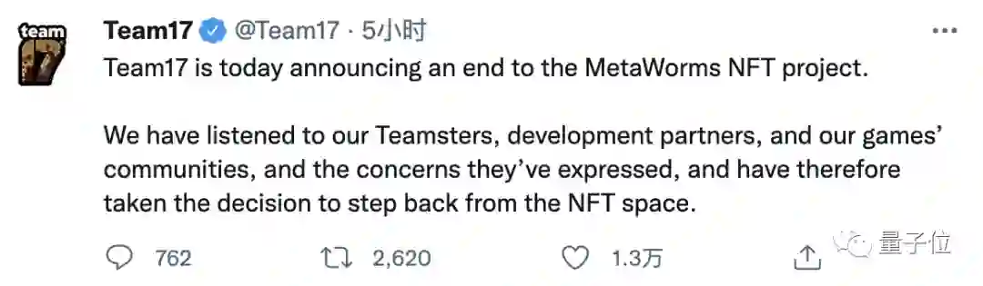 压力之下,被谴责的Team17也终于宣布放弃NFT计划。