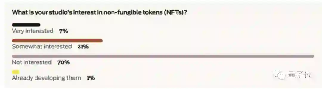 在最近一次全球游戏开发者大会GDC上作了相关调查,70%的开发者表示对NFT没有兴趣。