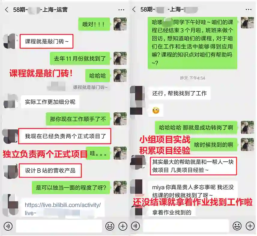 基于此,课程在每个知识板块后设置实战项目,一共3个月的干货输入、10+次作业输出、5次真实项目实战。所有实战项目都抽取自典型工作场景,回归工作场景能够直接复用。