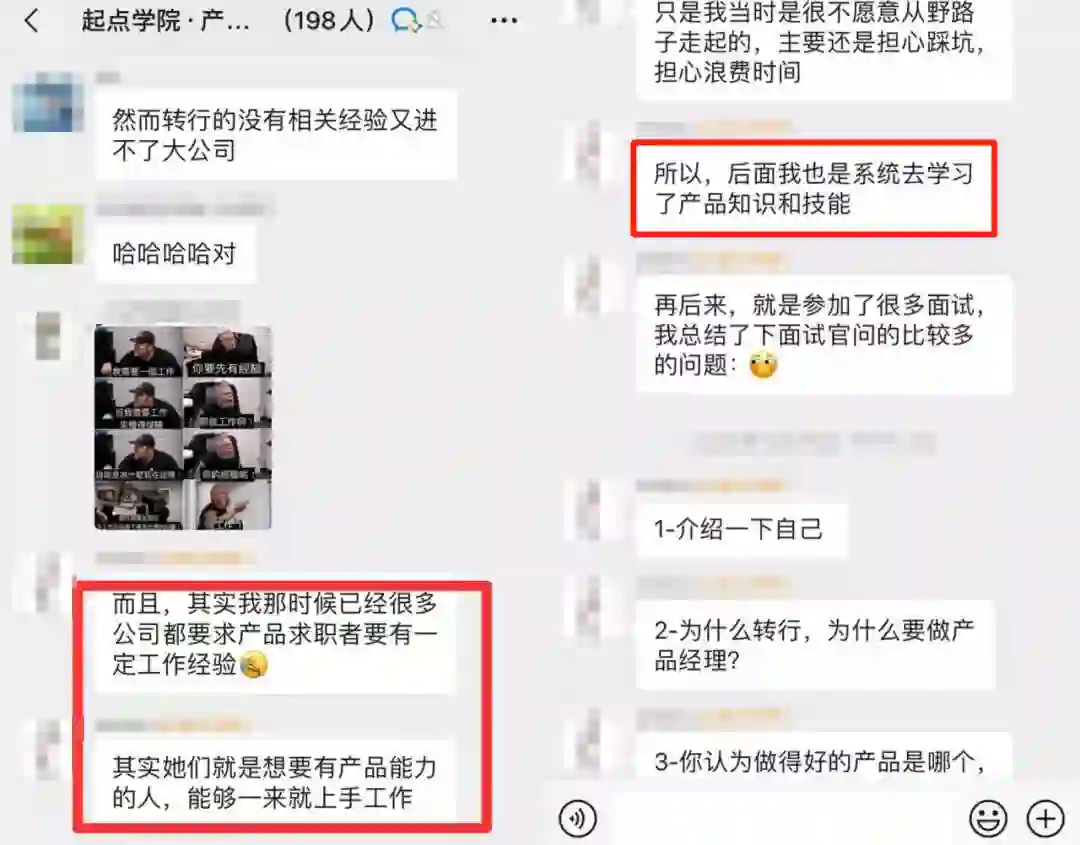 在我们课程顾问老师的群里就有学员分享了她0产品经验转岗的坎坷之路: