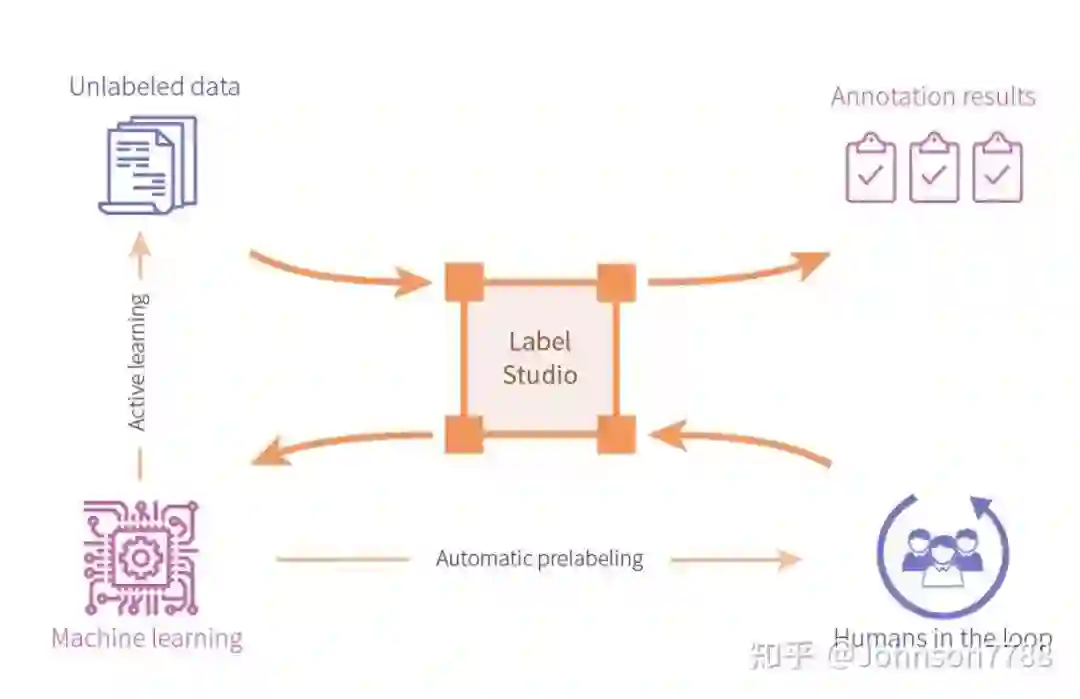 如下图,label-studio用于连接各个数据导入,数据标注,调用模型训练标注好的数据的作用。