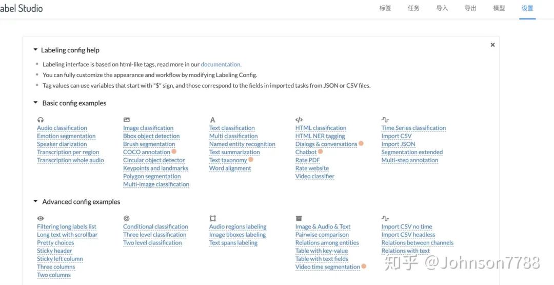 预设多种Basic config, 支持不同的数据格式的标注,点击后可以进行预览。
