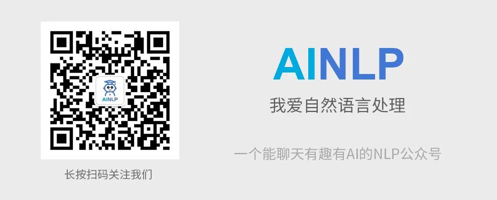 AINLP 是一个有趣有AI的自然语言处理社区,专注于 AI、NLP、机器学习、深度学习、推荐算法等相关技术的分享,主题包括文本摘要、智能问答、聊天机器人、机器翻译、自动生成、知识图谱、预训练模型、推荐系统、计算广告、招聘信息、求职经验分享等,欢迎关注!加技术交流群请添加AINLPer(id:ainlper),备注工作/研究方向+加群目的。