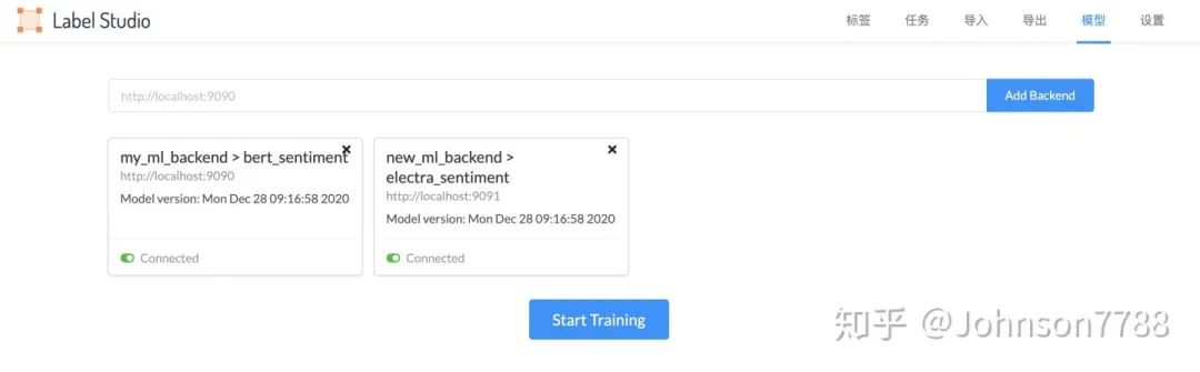 这里我们可以添加多个ML后端,方便标注人员进行实时对比哪个模型的pre-labeling更好一些