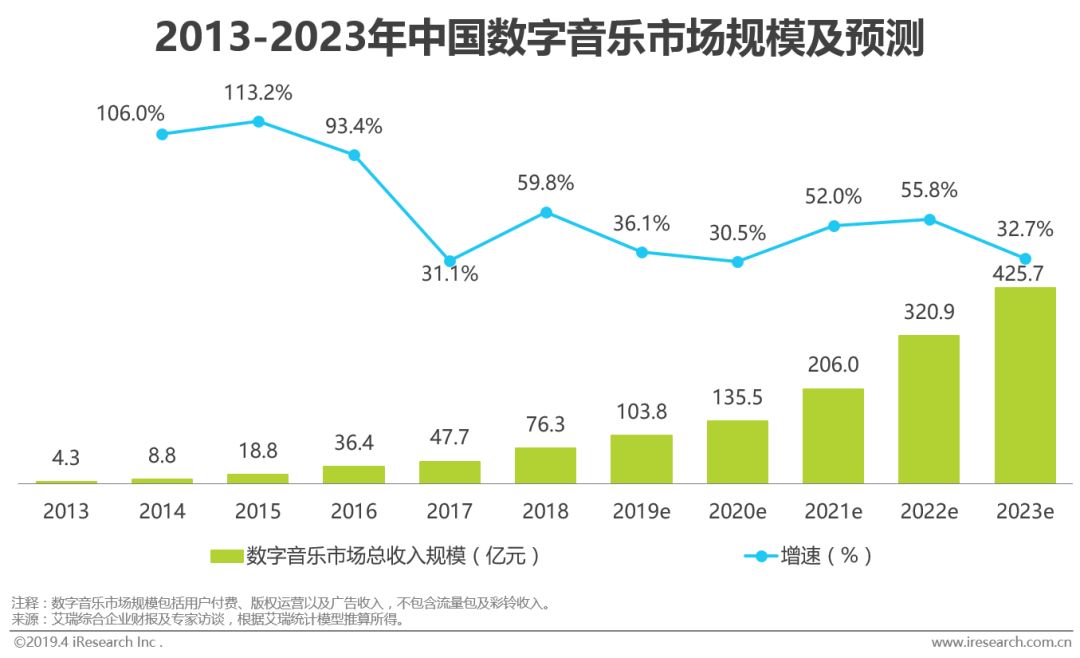 4月2日,国际唱片协会IFPI发布了《2019年全球音乐产业报告》,报告显示,中国继2017年首次进入全球前十大音乐市场后,2018年排名攀升至第七位,实现了短期之内的快速增长。报告同样显示,在全球音乐产业收入中,数字音乐收入占据58.9%的份额。而中国音乐市场的繁荣也离不开数字音乐的助推力,根据艾瑞咨询最新发布的《2019年中国数字音乐产业研究报告》显示,2018年中国数字音乐市场规模已达76.3亿元,同比增长接近60%,是市场商业化复兴的体现。在政策推行正版化后,数字音乐市场对于商业模式进行了活跃的改革和创新,同时联动音乐产业链上下游企业,为中国音乐产业的发展带来了新的契机。