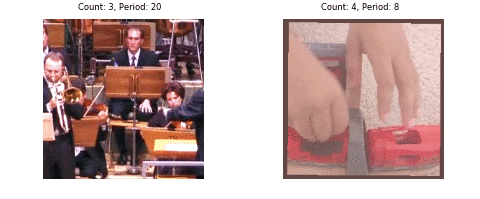左图:一个由随机视频生成合成带重复视频的示例。右图:一个使用相机运动增强合成的视频示例,这对于模型来说难度更大,但能更好地泛化用于真实的重复视频上。(视频均来自 Kinetics)