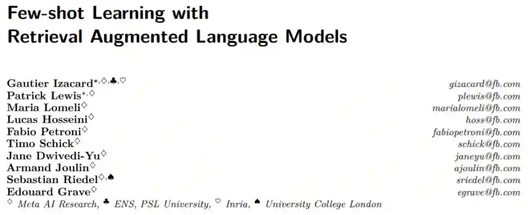 目前为止检索增强模型还没有展示出令人信服的小样本学习能力。论文中,来自 Meta AI Research 等机构的研究者提出小样本学习是否需要模型在其参数中存储大量信息,以及存储是否可以与泛化解耦。他们提出 Atlas,其是检索增强语言模型的一种,拥有很强的小样本学习能力,即使参数量低于目前其它强大的小样本学习模型。