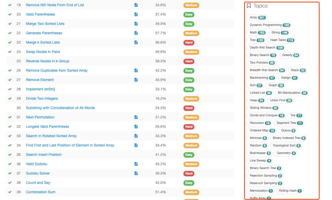 规避挫折法 Leetcode 很人性化的把题目的难度划分为:容易题,中等题,难题。为了避免刷题时候,身心受到打击摧残,只做简单题。该法对心理脆弱、亟需成就感同学最佳。
